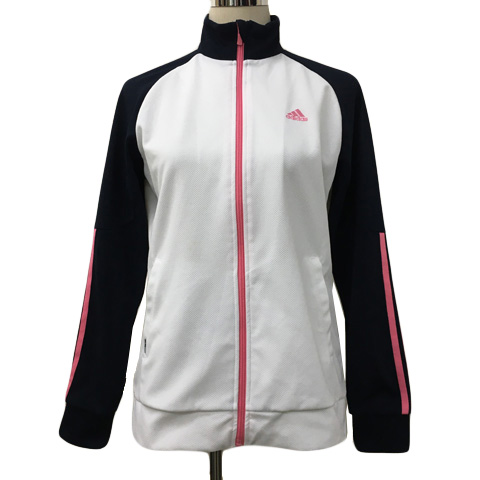 アディダス adidas ジャケット ジャージ スポーツウェア ジップアップ ロゴ 刺繍 ライン 長袖 L 白 紺 ホワイト ネイビー レディース
