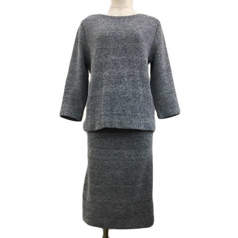 ボッシュ セットアップ セーター ニット ボートネック スリット 長袖 スカート タイト ひざ丈 ウエストゴム ウール メランジ 38 グレー