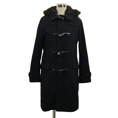 イオ io コート ダッフル ロング ウール カシミヤ混 ライナー フェイクファー メルトン 無地 長袖 2 黒 ブラック レディース