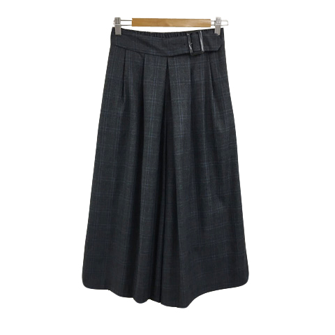 グローブ grove パンツ ワイド クロップド ガウチョ タック チェック ウエストゴム ハイウエスト M グレー 青 ブルー レディース