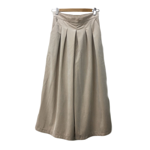 グローブ grove パンツ ワイド ガウチョ ロング タック ウエストゴム ギャザー 無地 M ベージュ レディース