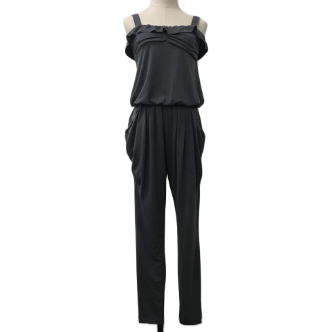 ビバユー VIVA YOU オールインワン サロペット テーパード ロング フリル 無地 ノースリーブ 2 グレー レディース
