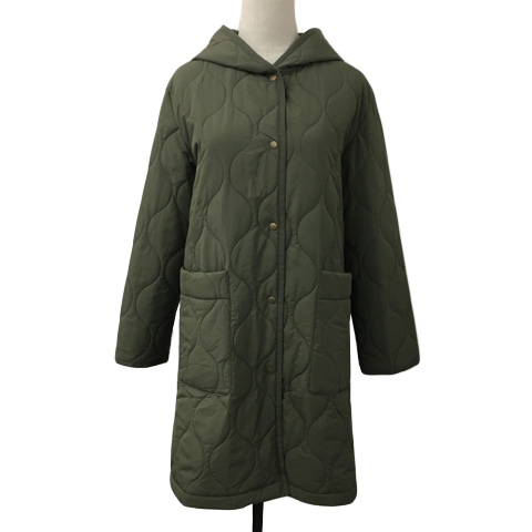 イッツインターナショナル コート キルティング 中綿 シングル ロング フード 無地 長袖 M 緑 グリーン レディース