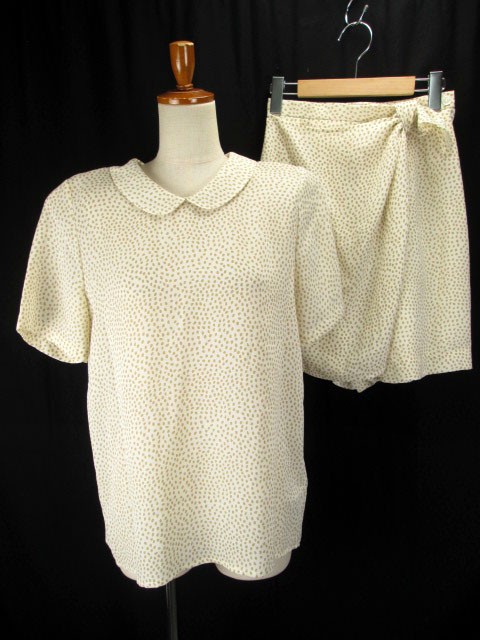 アルファキュービック ALPHA CUBIC セットアップ ドット ブラウス キュロット シフォン 36 アイボリー ベージュ レディース
