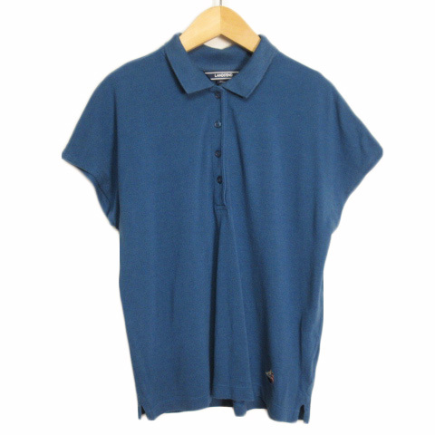 ランズエンド LANDS' END ポロシャツ 刺繍 フレンチスリーブ S 青 ブルー レディース