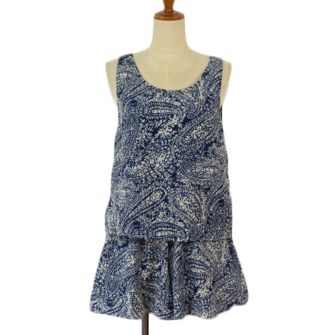 エージーバイアクアガール AG by aquagirl セットアップ カットソー ノースリーブ ショートパンツ 総柄 S 青 ブルー レディース