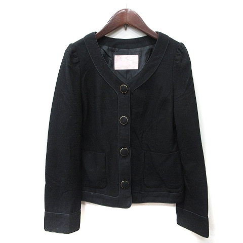 ハニーバンチ Honey Bunch ノーカラージャケット 総裏地 ウール 0 XS 黒 ブラック /YI レディース