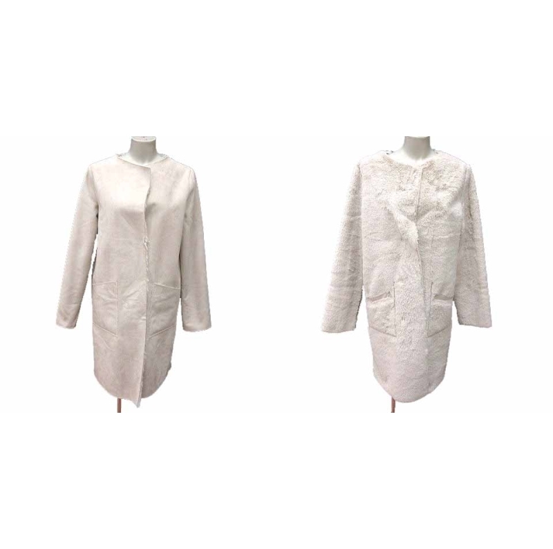グローブ grove ノーカラーコート リバーシブル フェイクスエード フェイクファー M アイボリー 白 ホワイト /YK レディース