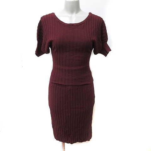 ロイヤルパーティー ROYAL PARTY セットアップ 上下 ニット リブ ドルマンスリーブ 半袖 タイトスカート ミモレ ロング F 赤 ボルドー