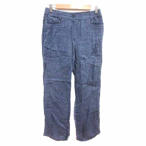 イタリヤ 伊太利屋 La moda goji テーパードパンツ ラインストーン 麻 リネン 7 紺 ネイビー /YK レディース
