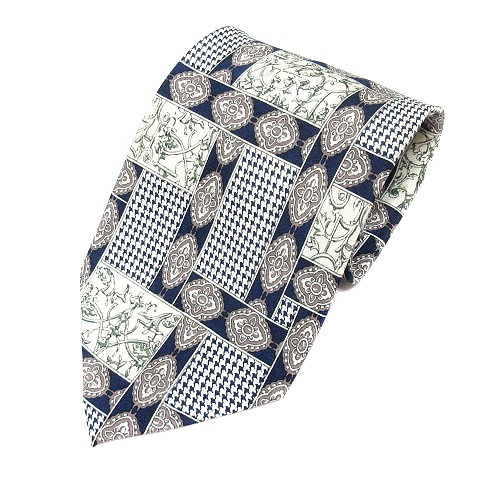 ローランベノン Laurant Benon ネクタイ ワイドタイ 総柄 絹 シルク 白 アイボリー 紺 ネイビー /MN ●RY メンズ