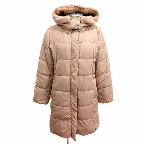 トップバリュ TOPVALU 中綿コート ジップアップ フード フェイクファー L ベージュ /YK ●RY レディース