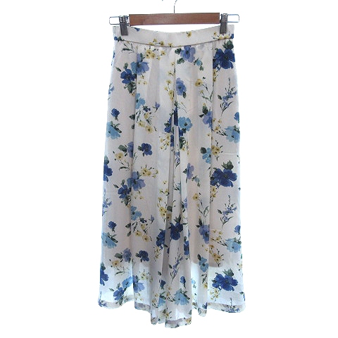 グローバルワーク GLOBAL WORK ガウチョパンツ ワイド スカンツ イージー 花柄 S 白 ホワイト /AU レディース