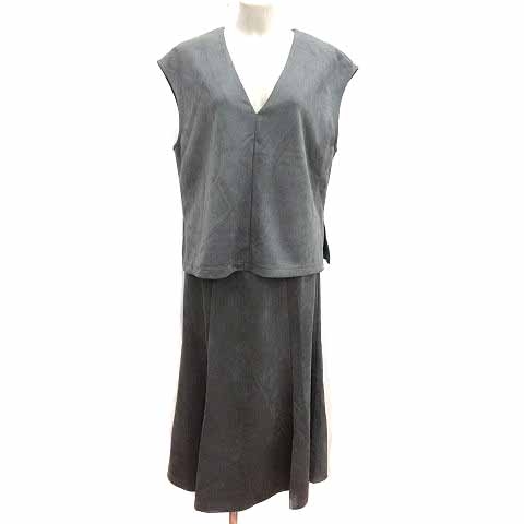 グローブ grove セットアップ 上下 ベスト プルオーバー Vネック フレアスカート ロング フェイクスエード L グレー /YK レディース