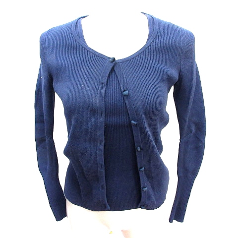 エストネーション ビス ESTNATION bis アンサンブル ニット カーディガン 長袖 ニット カットソー オーバルネック フリル 半袖 F 紺