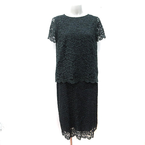 エムセブンデイズ M 7days セットアップ 上下 ブラウス プルオーバー 半袖 タイトスカート ミモレ ロング 総レース 2 M 黒 ブラック /YI レディース