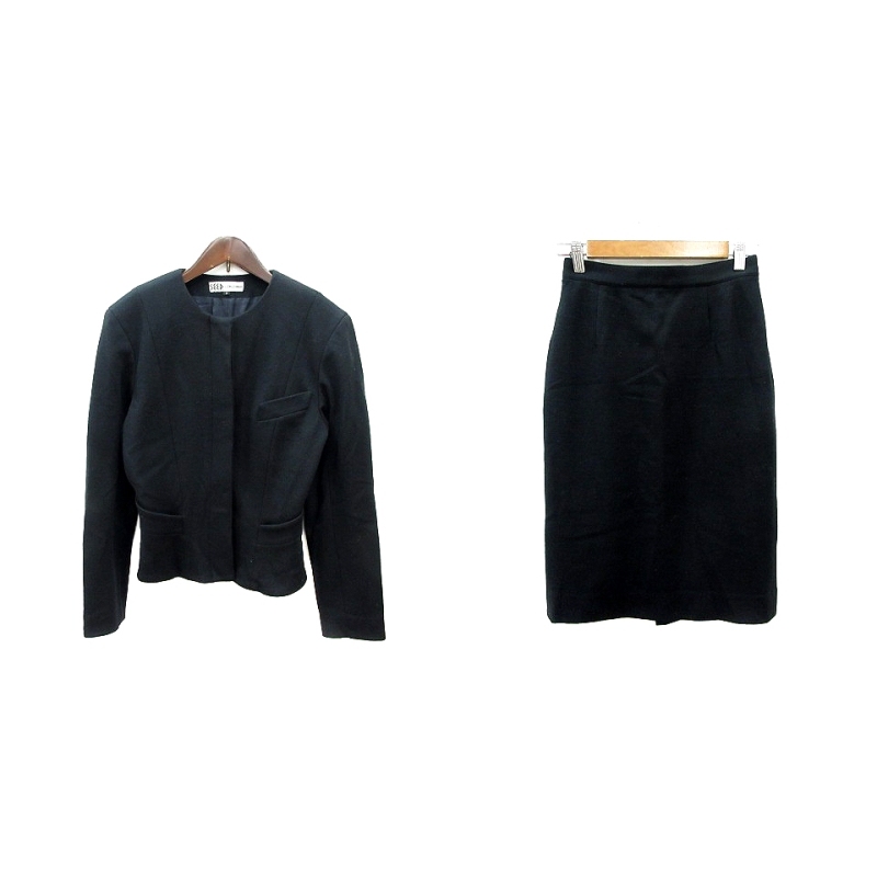 49アベニュー ジュンコシマダ セットアップ 上下 ノーカラージャケット 総裏地 タイトスカート ミモレ ロング ウール 9 M 黒