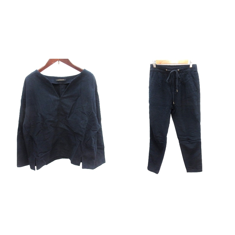バンヤードストーム BARNYARDSTORM セットアップ 上下 シャツ ブラウス ハートシェイプドネック 長袖 テーパードパンツ イージー 0 紺