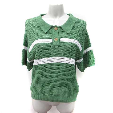 ニコアンド Niko and.. ポロシャツ かぎ編み 半袖 ボーダー M 緑 グリーン /YI レディース