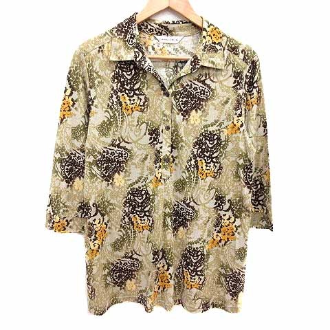 チャージ CHARGE ポロシャツ ニット スキッパーカラー 総柄 七分袖 L ベージュ /YK レディース