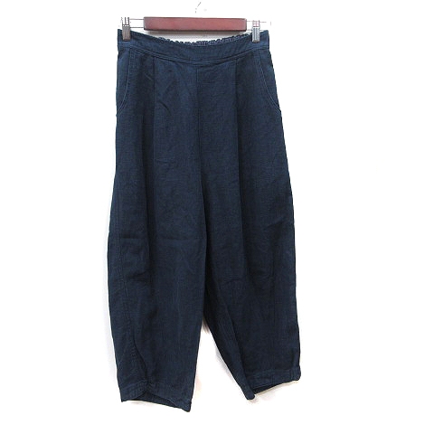 アースエコロコ earth_eco_loco サルエルパンツ 麻 リネン L 紺 ネイビー /YI レディース