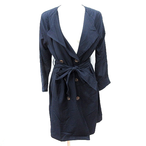 グローバルワーク GLOBAL WORK ロングコート ダブル 総裏地 ウエストマーク M 紺 ネイビー /AU レディース