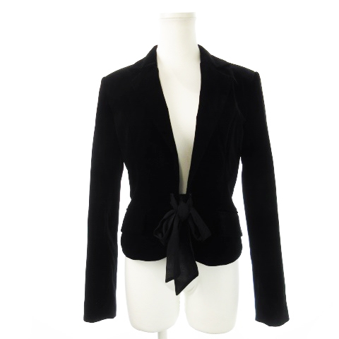 エムケー ミッシェルクラン ジャケット テーラード ベロア 総裏地 ストレッチ フロントリボン 厚手 光沢感 38 黒 ブラック /CK27