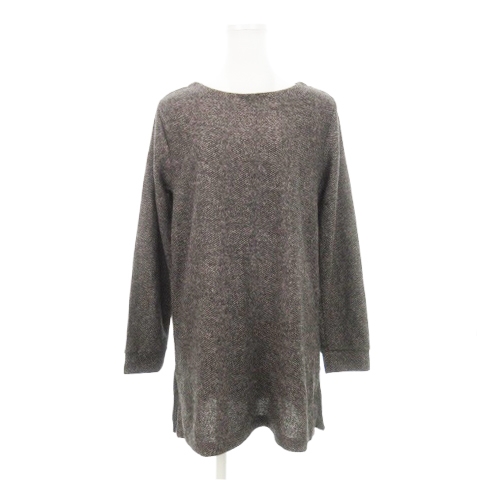グローブ grove チュニック カットソー ラウンドネック 長袖 ストレッチ サイドスリット ミックスカラー L グレー /AH5 レディース