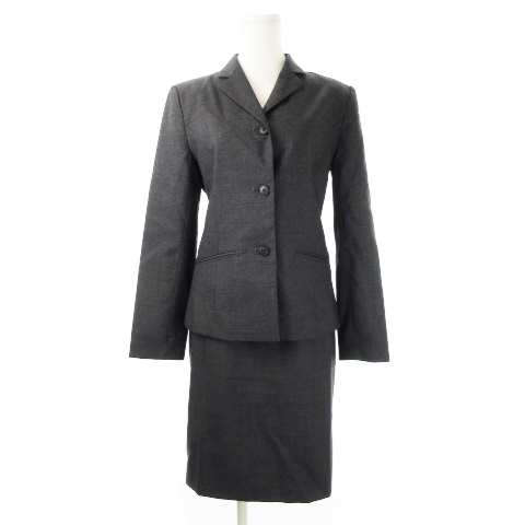 ヴェールダンス Vert Dense スーツ セットアップ 上下 ジャケット テーラード スカート ひざ丈 総裏地 ウール 3釦 通勤 ビジネス 3 グレー