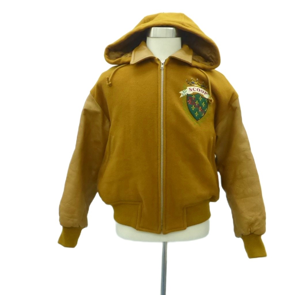 スクープボーイズ SCOOP BOYS スタジャン ブルゾンジャケット ミドル丈 刺繍 フード付き F マスタードイエロー /HO9 ■GY61 メンズ