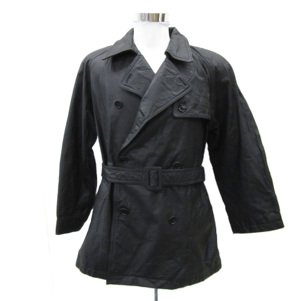 ハンターズラン HUNTERS RUN レザートレンチコート 本革 M 黒 ブラック ベルト付き ミドル丈 /YS46 ■GY61 メンズ