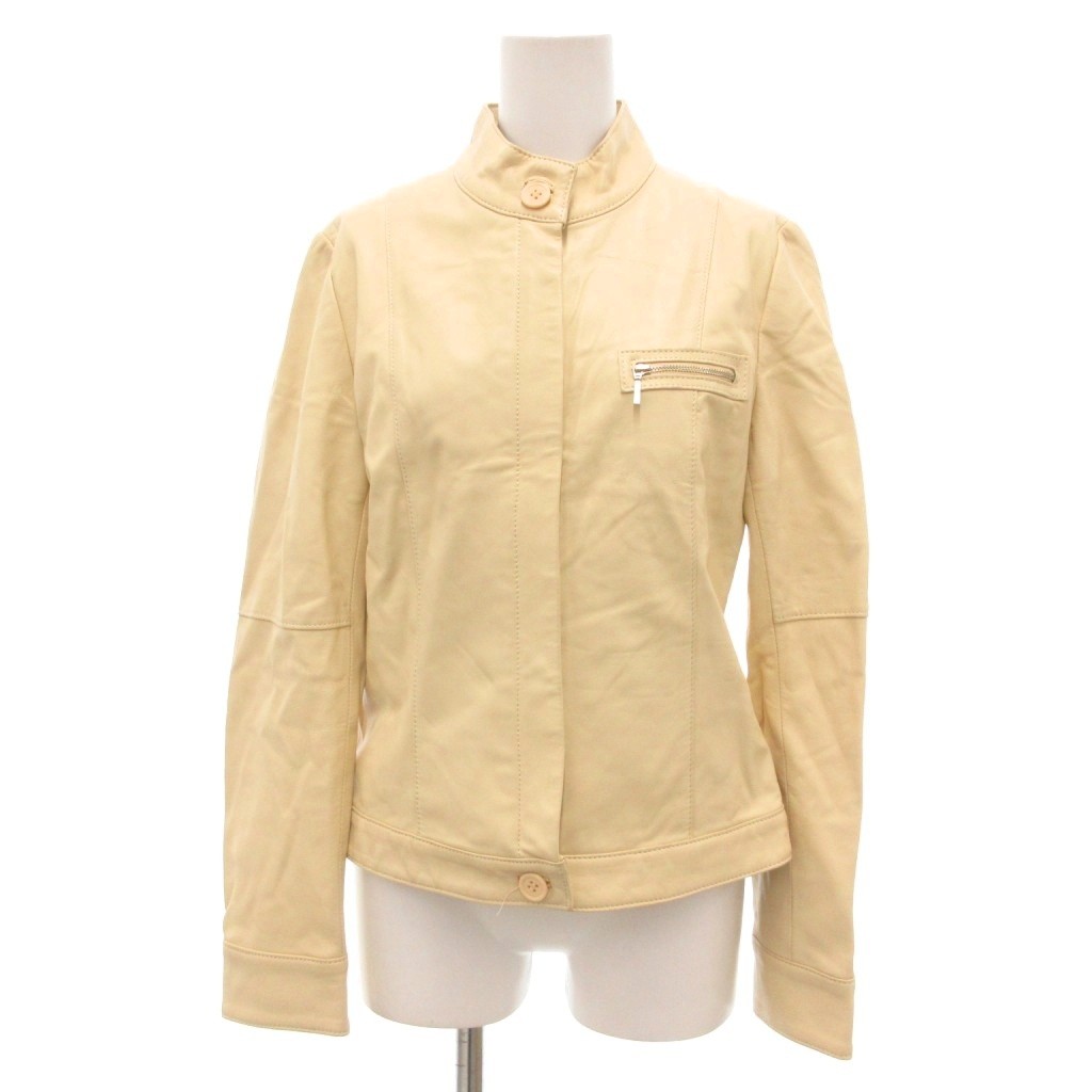 ノーブランド ヴィンテージ ラムレザージャケット 9 ベージュ 立ち襟 胸ポケット /YJ ■GY58 レディース