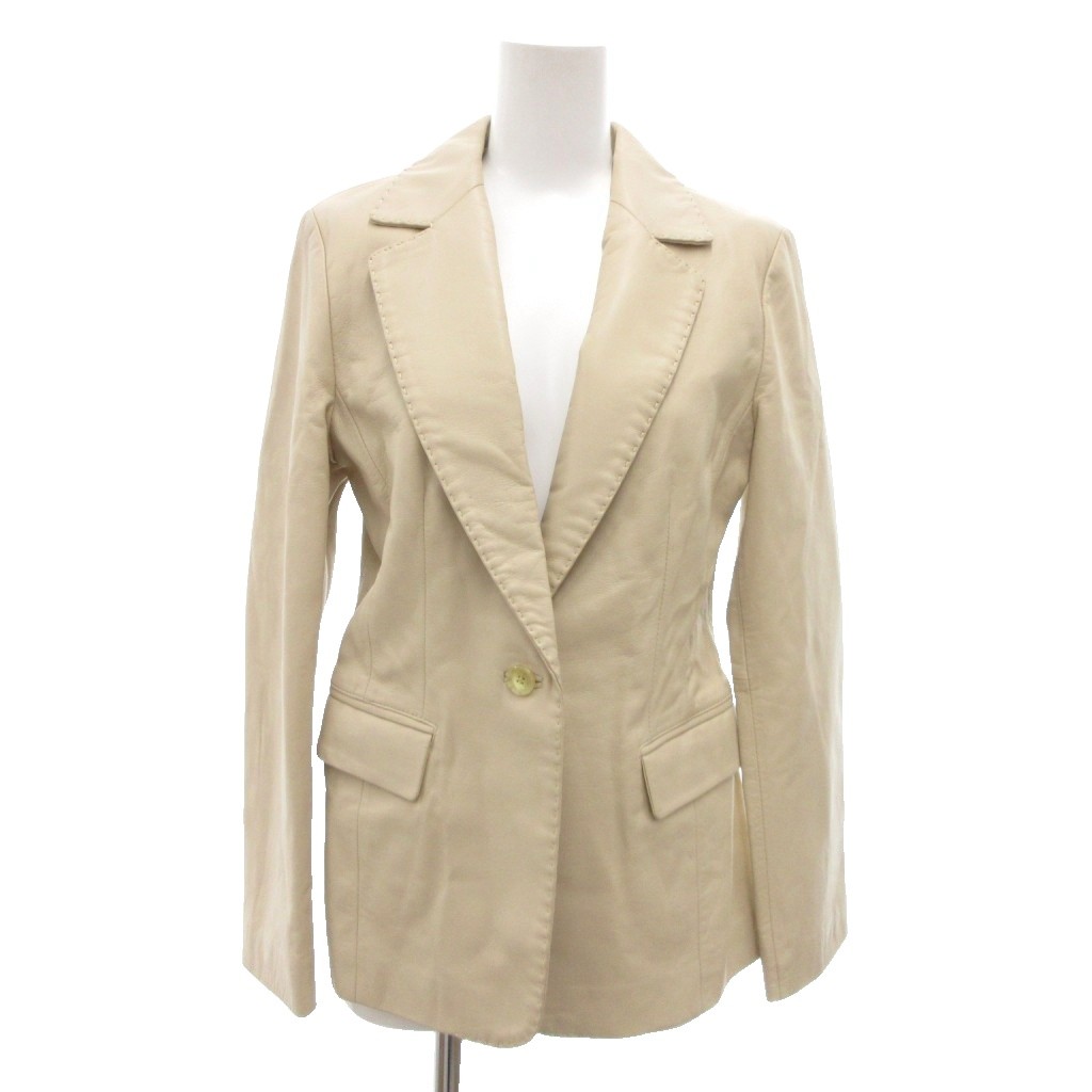 HSFASHION レザージャケット 羊皮 M アイボリー /NL ■GY58 レディース