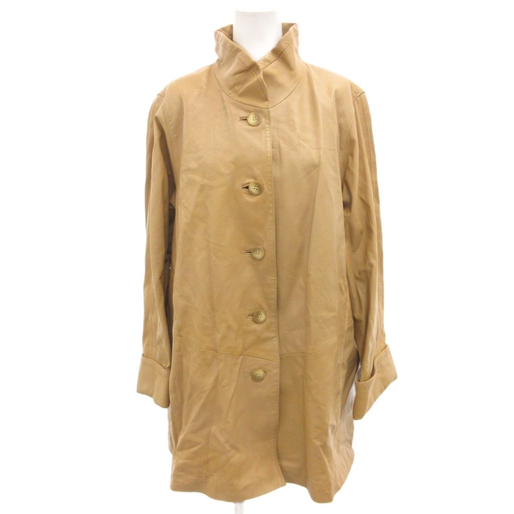 ジュビアン Jubien レザーコート 羊革 L ベージュ スタンドカラー /SJ ■GY58 レディース
