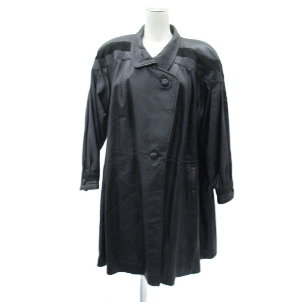 Pellaio シープレザーコート F 黒 ブラック ラウンドカラー ロング丈 /YS7 ■GY59 レディース