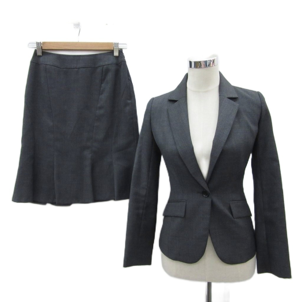 ノール シュド スーツ セットアップ 上下 テーラードジャケット シングルボタン フレアスカート ひざ丈 上36 S 下34 グレー レディース