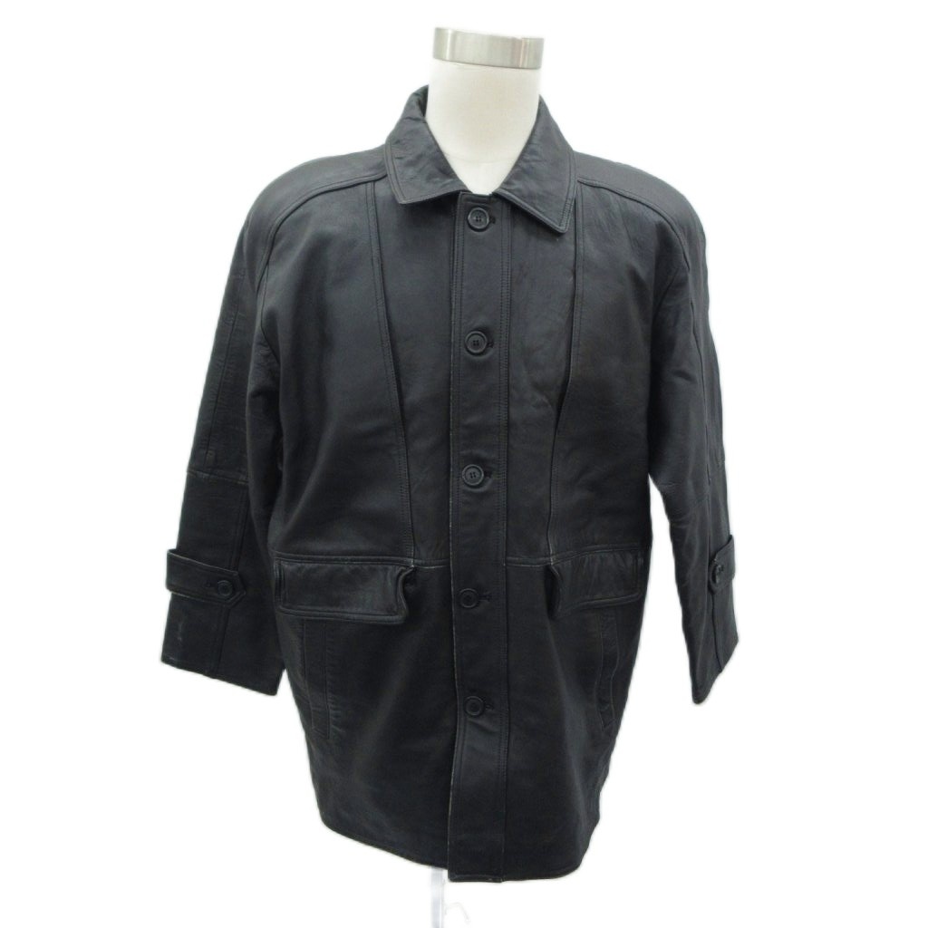 Donubio ラムレザーコート 中綿コート ステンカラー ミドル丈 L 黒 ブラック /MA2 ■GY58 メンズ
