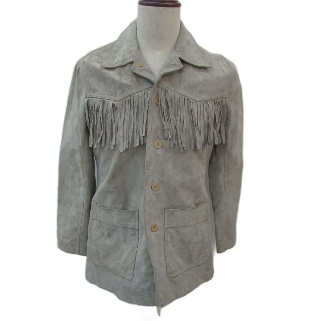 NON GRADE スエードレザージャケット ミドル丈 M グレー フリンジ /SM24 ■GY58 メンズ