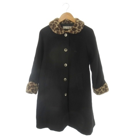 ハナエモリ HANAE MORI プチ コート 子ども服(女の子用) 130 黒 ブラック 長袖 レオパード柄襟 レオパード柄袖口 /CK6 ■GY58 キッズ