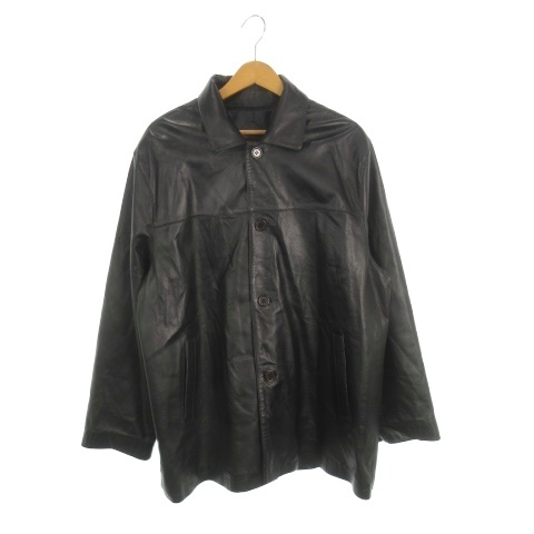 インタークルー intercrew レザージャケット 本革 105 黒 ブラック 無地 レギュラーカラー 長袖 /AH3 ■GY58 メンズ