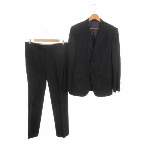 アバハウス ABAHOUSE スーツ ジャケット パンツ シングル ダブルベンツ 3 黒 ブラック ストライプ柄 2つボタン 長袖 /AH30 ■GY58