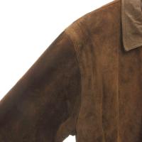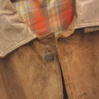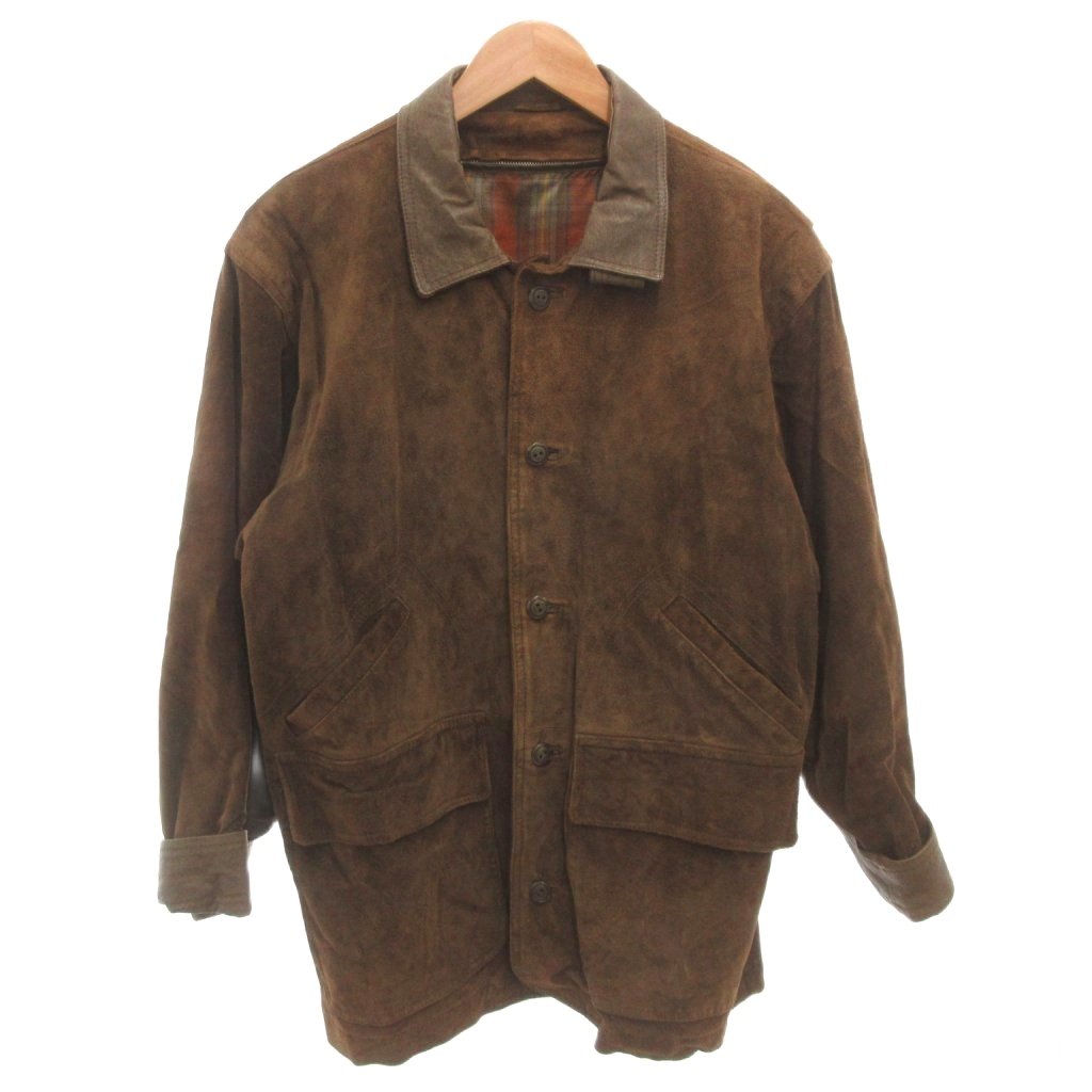 ノーブランド スエードジャケット 豚革 レザー 裏地チェック ライナー付き 茶 ブラウン /FF ■GY61