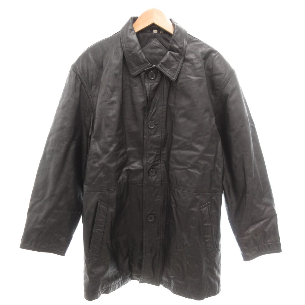 ノーブランド レザージャケット L 黒 ブラック ステンカラー ボタンフロント /NL ■GY61 メンズ