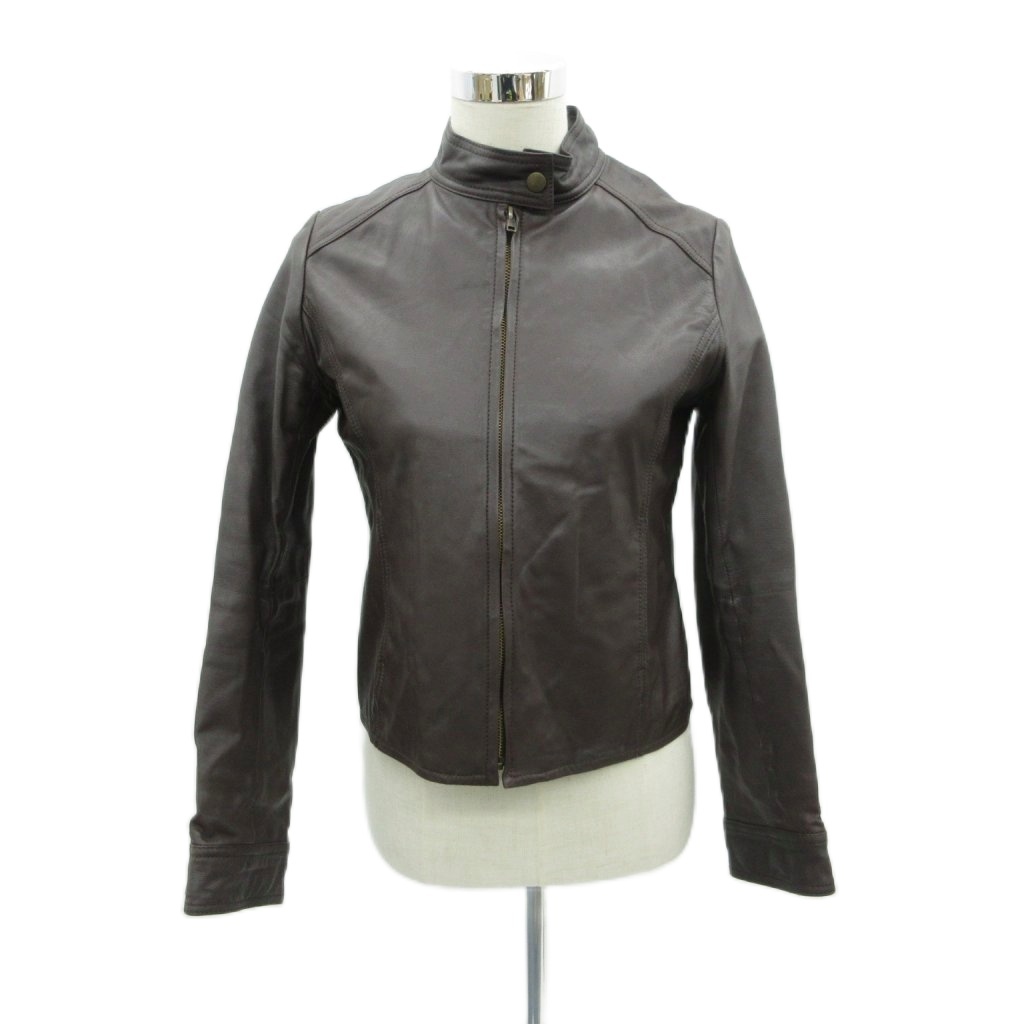 レザージャケット 革ジャン 上着 ミドル丈 スタンドカラー L ダークブラウン 無地 S11CC-6001 /HO56 ■GY58 レディース