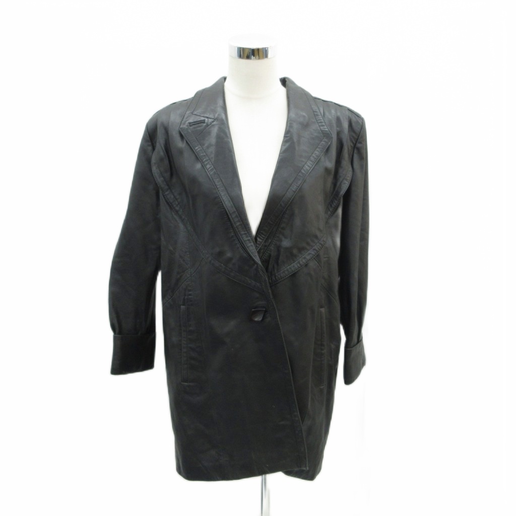 LEMONDE レザーコート ラムレザー ミドル丈 F 黒 ブラック ショールカラー /YS27 ■GY58 レディース