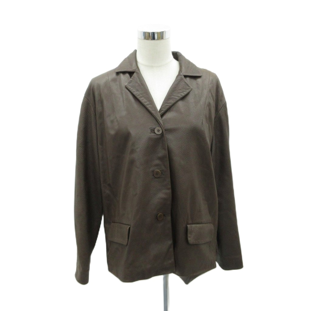 シルヴィシメル Sylvie Schimmel レザージャケット ミドル丈 茶 ブラウン オーバーサイズ オープンカラー /MA10 ■GY58 レディース