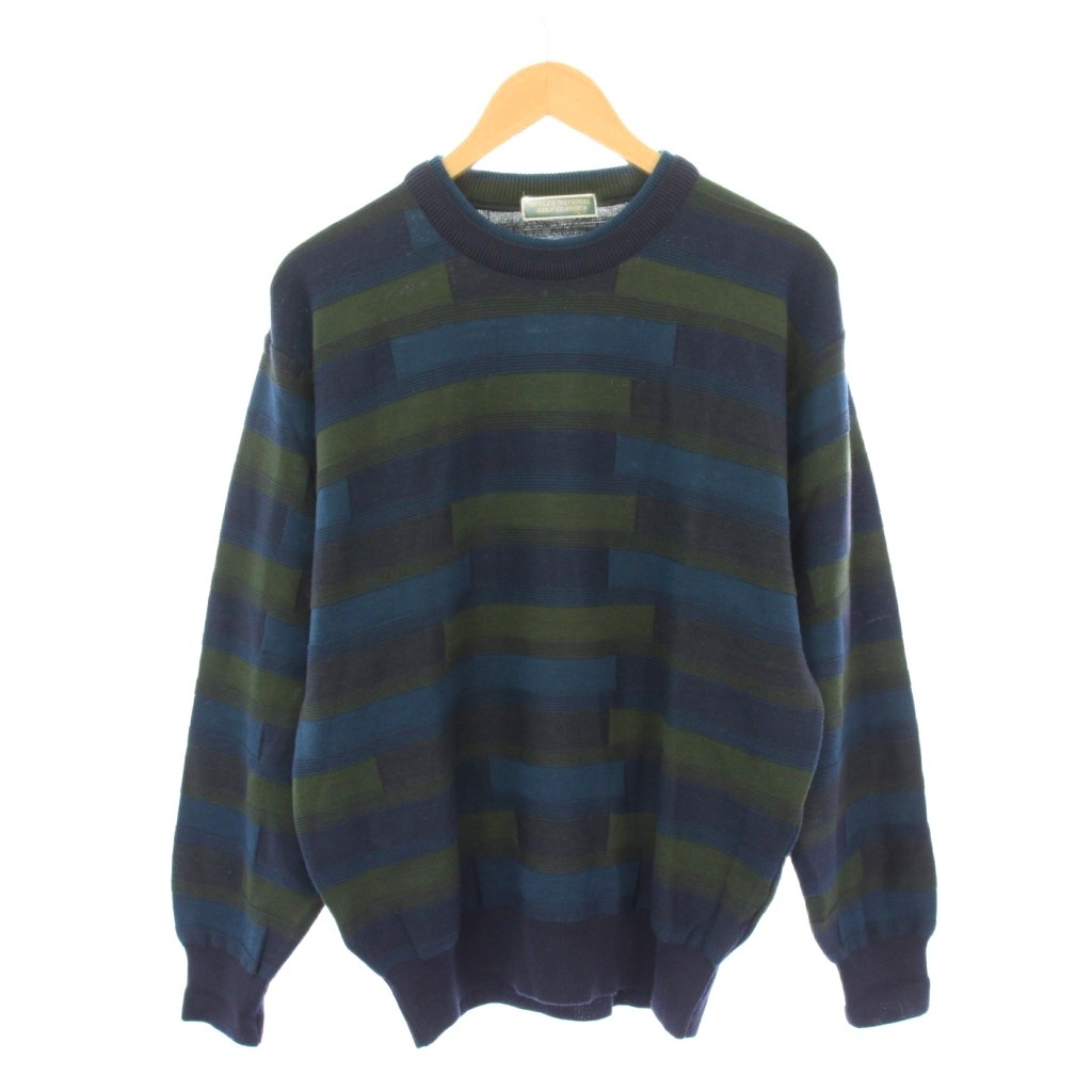 バトラーナショナルゴルフクラシック Butler National Golf Classic ニット セーター 長袖 クルーネック 総柄 ウール 紺 ネイビー /BB