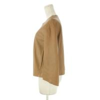 自由区 オンワード樫山 ラムレザージャケット 上着 32 茶 ブラウン 無地 ノーカラー 七分袖 /CK18 ■GY63 レディース