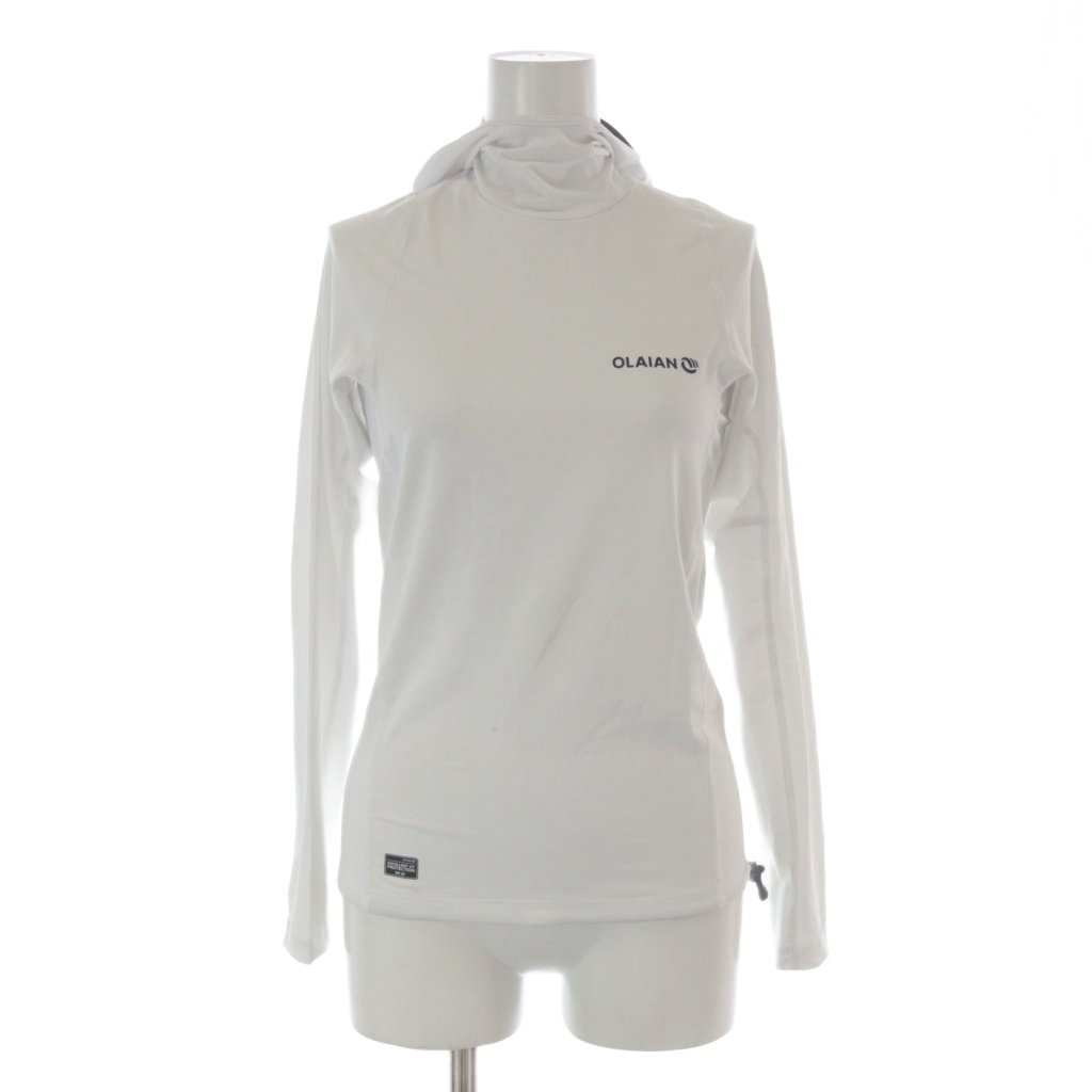 オライアン OLAIAN スポーツウエア トップス S 白 ホワイト 紺 ネイビー マリンスポーツ UVカット フード付き ラッシュガード 長袖 /GR
