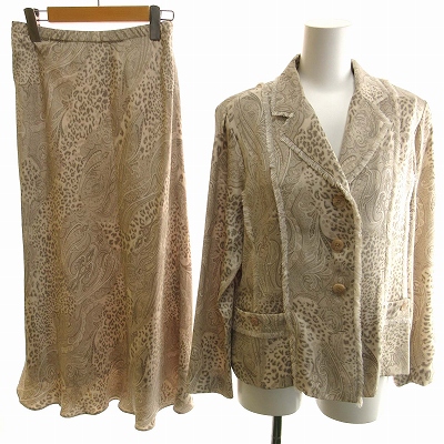 out ZON セットアップ スカート ロング シルク L レオパード柄 ペイズリー柄 ベージュ系 ■ECS /ZS レディース